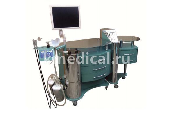 Для проведения различных процедур в ЛОР- кабинетах, в т. ч. и для манипуляций с применением видеоэндоскопического оборудования, таких как, промывание ушных полостей, лечение с помощью жидких и масляных лекарственных препаратов, проведение осмотров, хранения инструментария. Представляет из себя две стойки (эндоскопическая и приборная) и модуль ящиков, соединяемые вместе в единую конструкцию в месте эксплуатации.