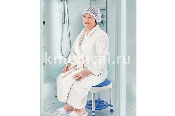 Стул для ванны 10502 является полностью разборным. Ножки стула съемные, на ножках установлены противоскользящие насадки. Сиденье вращающееся. Также в комплект входит полочка для принадлежностей, устанавливающаяся на ножках изделия. Продается в индивидуальной упаковке.